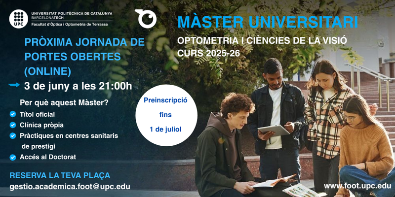 Aprofiteu aquesta oportunitat per avançar en la vostra trajectòria professional i contribuir significativament al camp de l'Optometria i Ciències de la Visió.