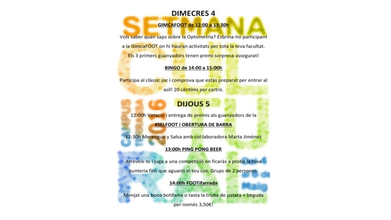 Vols saber quan saps sobre la Optometria? Esbrina-ho participant a la GimcaFOOT on hi hauran activitats per tota la teva facultat.