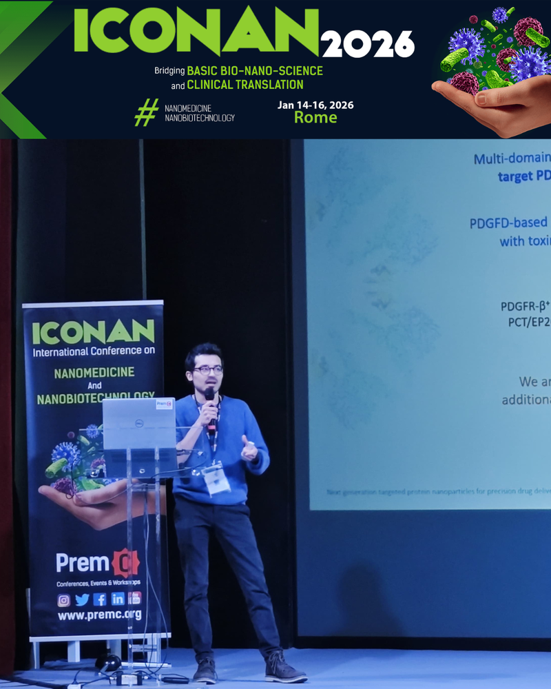 El profesor Eric Volta participa en el congreso internacional ICONAN 2026 en Roma con su ponencia "Next-generation targeted protein nanoparticles for precision drug delivery to the tumor microenvironment".